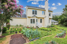 Trex stairs with vinyl railing to backyard with multiple herb gardens