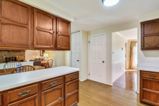 - Oak cabinetry with ceramic splash walls and laminate counters
